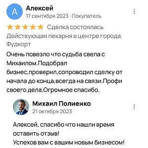 «Очень повезло что судьба свела с Михаилом. Подобрал бизнес, проверил, сопроводил сделку от начала до конца, всегда на связи. Профи своего дела. Огромное спасибо.»