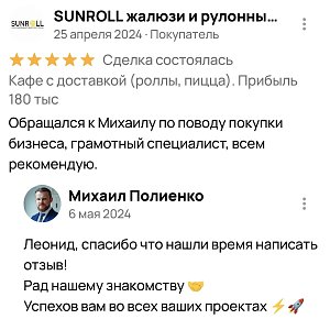«Обращался к Михаилу по поводу покупки бизнеса, грамотный специалист, всем рекомендую.»