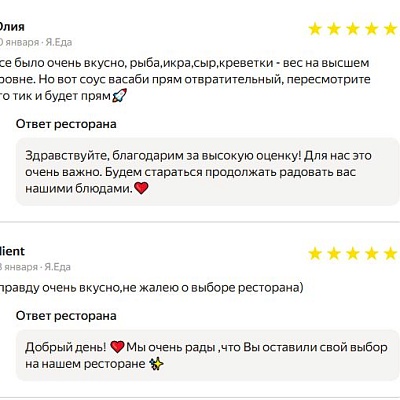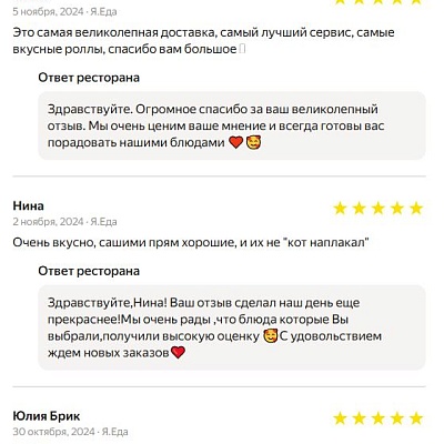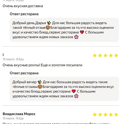 3. Кафе работает на вынос и доставку. Подключены все сервисы доставки, рейтинги 4,5-4,9*.